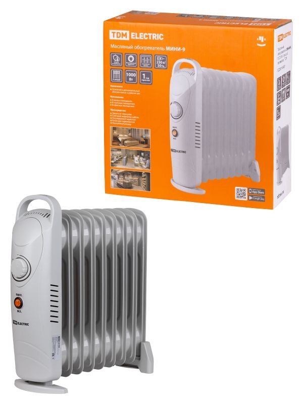 Масляный обогреватель МИНИ-9, 1000 Вт, 9 секций, термостат, TDM
