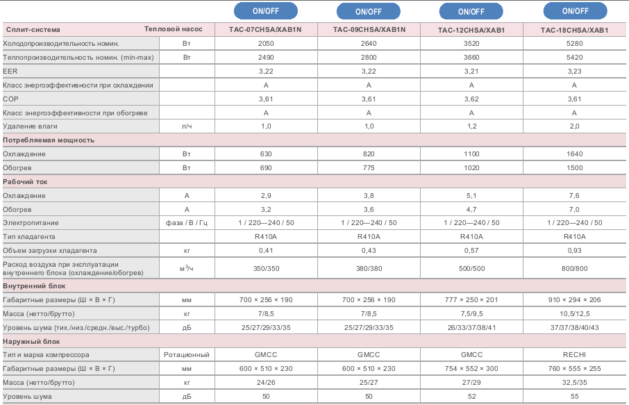 Кондиционеры серии Elite, работающие на хладагенте R410A, эксплуатируются при температурах окружающей среды: в режиме охлаждения — от +14 до +43 °C, в режиме нагрева — от -7 до +24 °C.