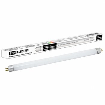 Лампа люминесцентная линейная двухцокольная ЛЛ-12/6Вт, T4/G5, 4000 К, длина 219,2мм TDM