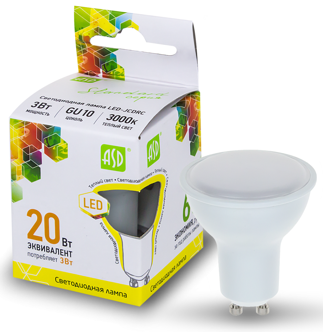 Лампа светодиодная LED-JCDRC-standard 3Вт 230В GU10 3000К 270Лм ASD