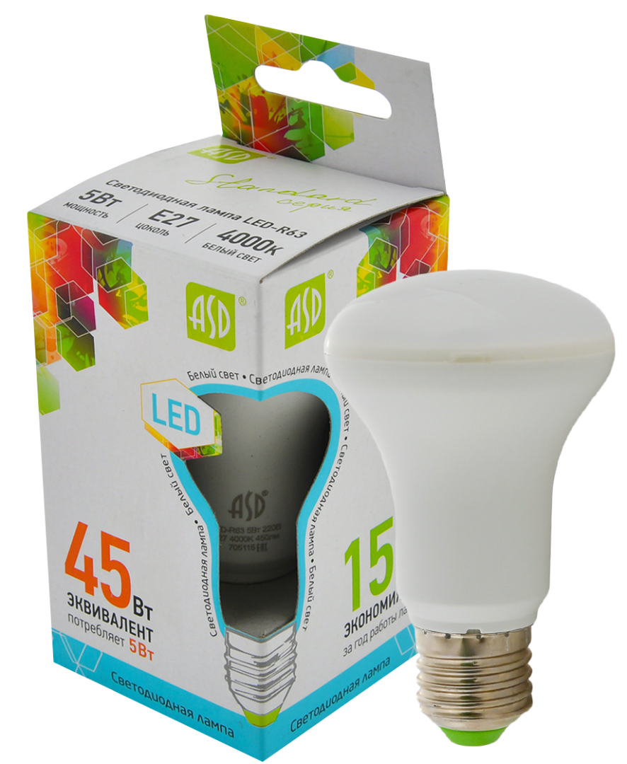 Лампа светодиодная LED-R63-standard 5Вт 230В Е27 4000К 450Лм ASD