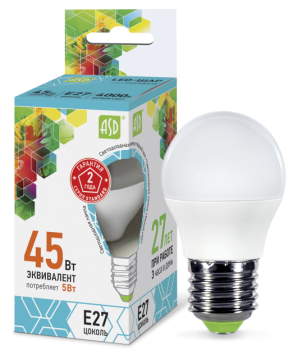 Лампа светодиодная LED-ШАР-standard 5Вт 230В Е27 4000К 450Лм ASD