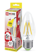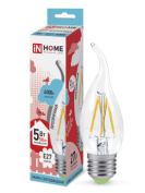 Лампа светодиодная LED-СВЕЧА-deco 5Вт 230В Е27 3000К 450Лм прозрачная IN HOME