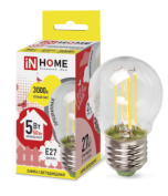 Лампа светодиодная LED-ШАР-deco 5Вт 230В Е27 3000К 450Лм прозрачная IN HOME