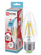 Лампа светодиодная LED-СВЕЧА-deco 5Вт 230В Е27 4000К 450Лм прозрачная IN HOME.