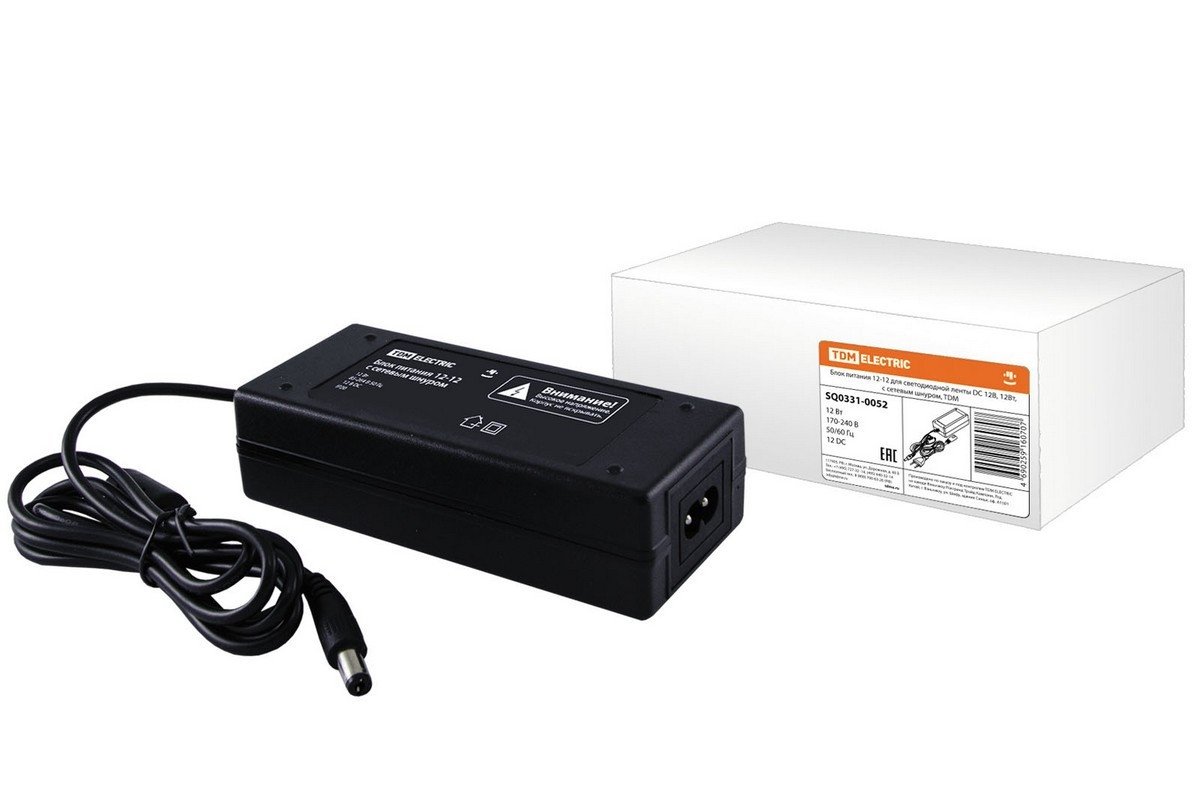 Блок питания 12-12 для светодиодной ленты DC 12В, 12Вт, с сетевым шнуром, TDM