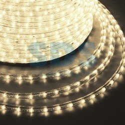 Дюралайт-гибкий световой шнур выполненный из ПВХ трубки с токопроводящими жилами и светодиодами внутри. Используется для декоративной и архитектурной подсветки объектов. Шнур с 2-мя проводами внутри называется фиксинг, такой дюралайт используется в режиме постоянного свечения. Дюралайт с 3-мя и более жилами питания называется чейзинг, светодиоды в чейзинге подключены поочередно к разным жилам, при использовании контроллера это позволяет создавать эффект "бегущей волны" из поочередно загорающихся светодиодов(режим свечения с динамикой). Дюралайт поставляется в бухтах длинами до 100м, в зависимости от модификации дюралайта модуль резки может составлять от 1 до 6 метров, следуя несложной инструкции потребитель легко может отрезать и подключить отрезок дюралайта нужной ему длины. Температурный диапазон использования от -40 до +50 С, монтаж при температуре выше 0 градусов.