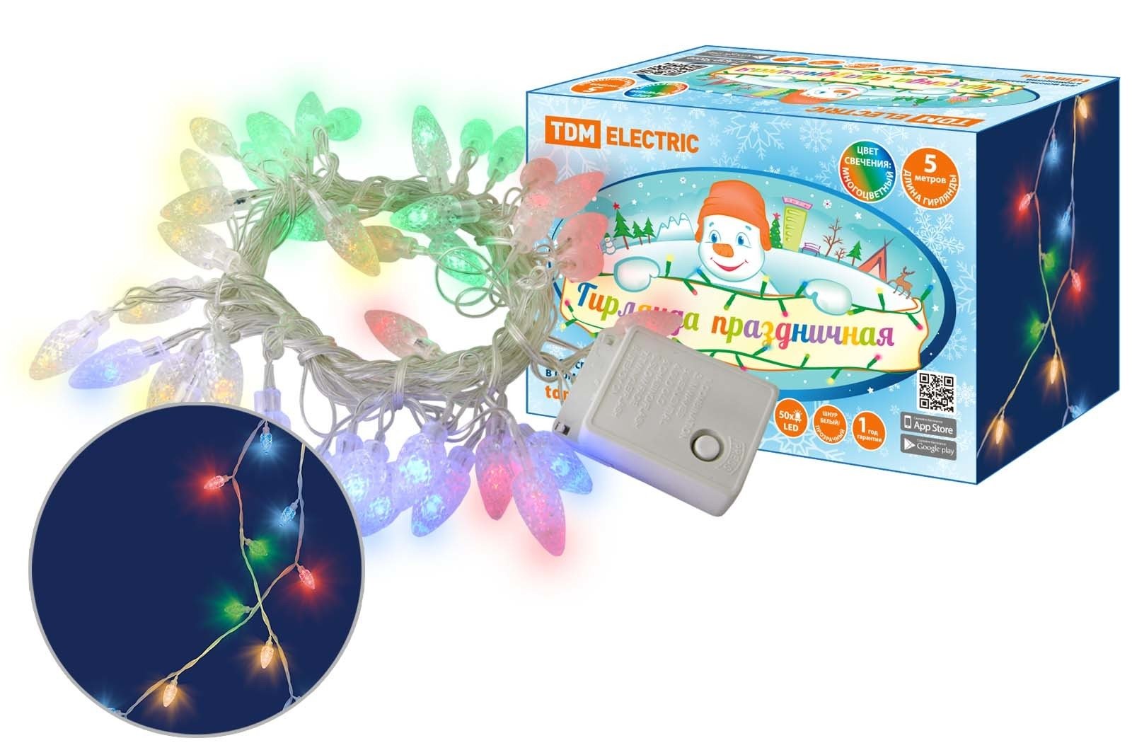 Гирлянда светодиодная "Шишки" 50LED, 5м, 8 режимов, многоцвет., прозр. шнур, 250 В, TDM