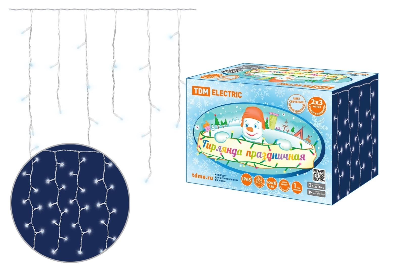 Гирлянда светодиодная "Занавес" 2х3м, 600LED, 6500К, бел. шнур, посл. подкл, IP65, 250 В, TDM