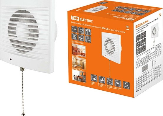Вентилятор бытовой настенный 150 СВ, с выключателем, TDM